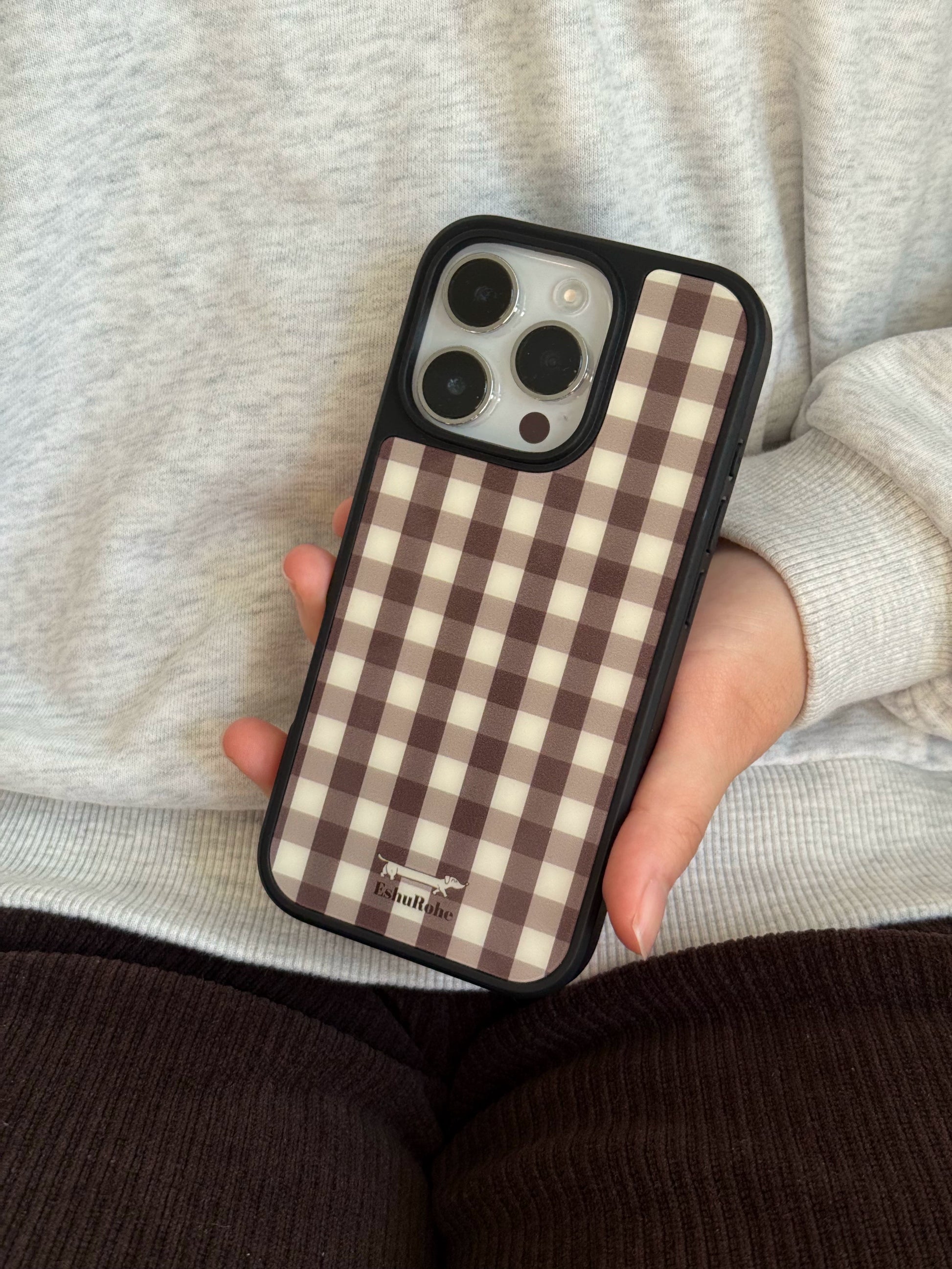Add a hint of classic charm to your phone—grab this minimalist brown plaid case today!