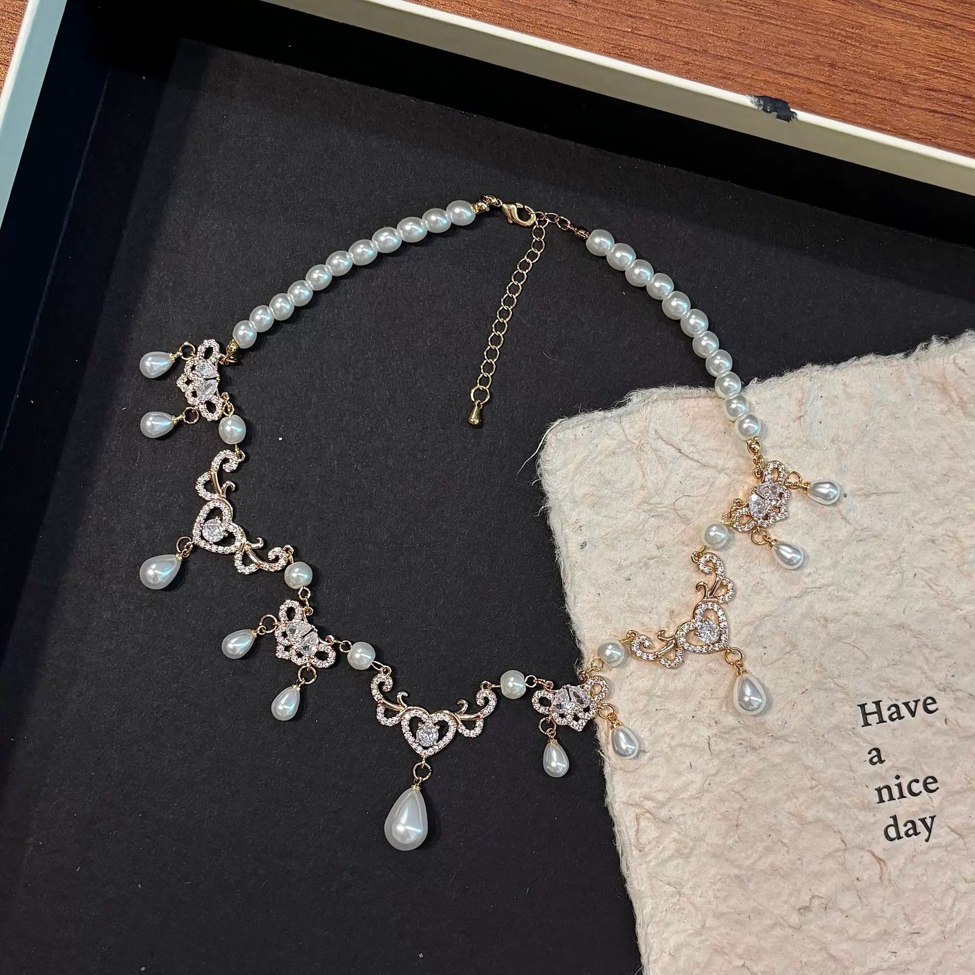 D-0002 Elegant French-Inspired Waterdrop Pearl Necklace with Vintage Charm
