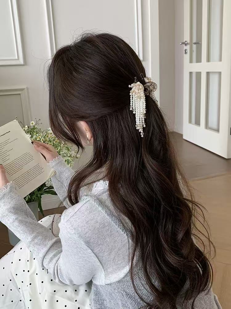 This exquisite hair clip features delicate pearl accents paired with flowing tassel details, delivering a blend of timeless elegance and subtle movement that elevates any hairstyle. It’s perfect for sophisticated women who love refined accessories, ideal for parties, weddings, dates or daily wear, and also makes a luxurious gift.